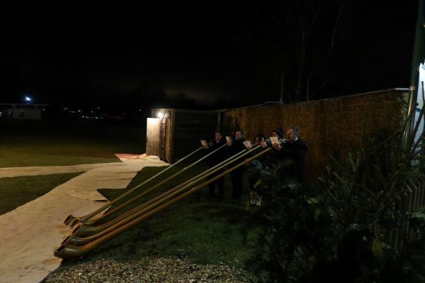 1. Vorsitzenden Jakob Aumiller, gemeinsames Singen von Weihnachtsliedern, Auftritt der „Guichinger Alphornbläser“