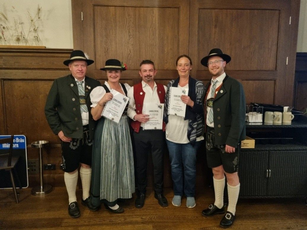 Bevor die Neuwahlen des Vorstandes und der Vorstandschaft begann, ehrte der 1. Vorsitzende Jakob Aumiller drei Mitglieder der Vorstandschaft die sich nicht mehr zur Wiederwahl stellten: Manfred Sperling, der seit 2009, 15 Jahre als 2. Vorstand agierte, Regina Sperling für 12 Jahre Amtstätigkeit, davon die letzten drei Jahre als Jugendwart und Veronika Lovasz für 9 Jahre Vorstandschaft u.a. als Trachtenwartin