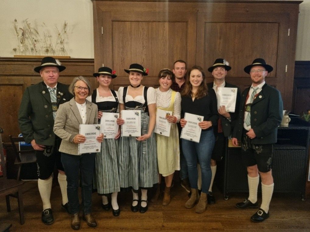 Nach der Begrüßung der Mitglieder und einer Gedenkminute für die in 2024 verstorbenen Mitglieder Walter Knöchel und Bernhard Reichenwallner, folgten verschiedene Tätigkeitsberichte der Vorstandsmitglieder für die Bereiche Gesamtverein (Jakob Aumiller), Jugend (Andrea Gabler), Volkstänzer und Plattler (Martina Jursch und Peter Gabler), sowie Vorlesen des Protokolls der letzten Hauptversammlung durch Elisabeth Gabler.