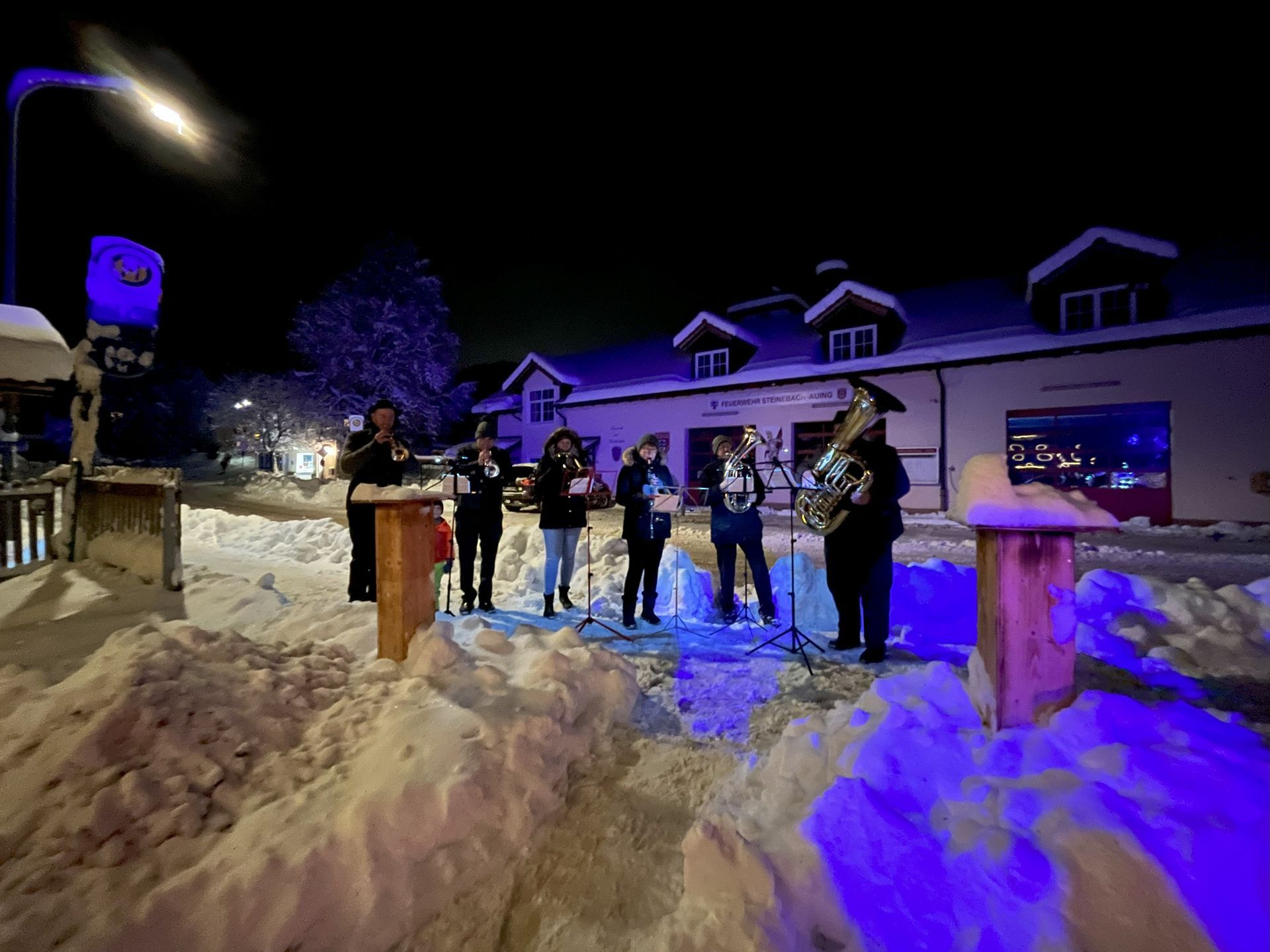 Treffpunkt war um 17.00 an der Pfeiffer Hüttn, bei Glühwein und zur besinnlichen Einstimmung mit der „Bläsergruppe Goldau“.